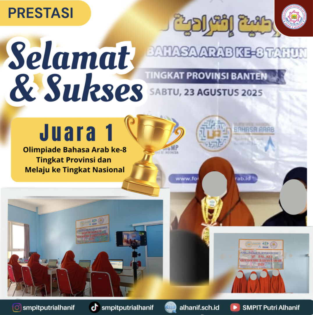 empat siswi SMPIT Putri Al Hanif Ananda Aisyah salah satu siswi SMPIT Putri Al Hanif melaju ke tingkat nasional yang InsyaAllah akan dilaksanakan pada tanggal 13 - 15 November 2025.